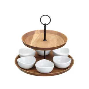 Zestaw do serwowania przystawek Artesà z dwoma poziomami to eleganckie i praktyczne akcesorium do serwowania ulubionych przysmaków. Dzięki dwupoziomowej konstrukcji zapewnia dużo miejsca na ułożenie smakołyków, jednocześnie oszczędzając miejsce na stole. Wykonana z wysokiej jakości materiałów gwarantujących długą żywotność i łatwą konserwację. Idealny wybór na każdą okazję w domu lub podczas imprez z przyjaciółmi i rodziną.