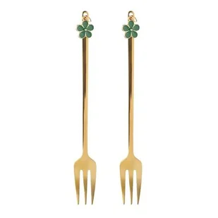 Komplet 2 widelczyków z ozdobną końcówką zielony kwiatek 13,5 x 1,5 cm złoty
