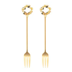 Widelczyk do ciasta z ozdobną końcówką świąteczny wianek złoty 2 sztuki