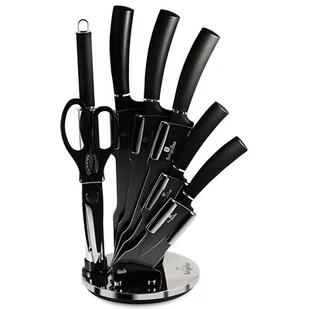 8 elementowy zestaw noży na stojaku firmy BERLINGER HAUS z serii Black Silver. Przeznaczone do porcjowania mięsa i ryb, krojenia pieczywa oraz obierania i siekania warzyw. Noże ze stali nierdzewnej dodatkowo pokryte powłoką nieprzywierającą non-stick. Wyposażone w uchwyty pokryte bardzo trwałą cienką warstwą silikonu dla uzyskania pewnego trzymania w każdych warunkach.
