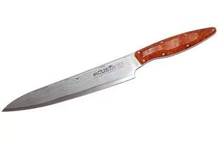 Japonia Producent: Mcusta Zanmai Typ noża: Japoński nóż Slicer (odpowiednik europejskiego noża do plastrowania i filetowania) Twardość HRC: 60 Ostrze: 33 warstwy damastu Rdzeń: stal VG-10 Rękojeść: