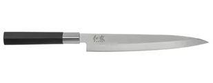 Wyjątkowy nóż typu YANAGIBA, ekskluzywnej marki KAI posiada jednostronne ostrze o długości 21 cm- jest to jedno z najważniejszych tradycyjnych japońskich ostrzy. Wąskie i niezwykle ostre ostrze, które jest niezastąpione podczas krojenia w cienkie, idealne plasterki surowej ryby podczas przyrządzania sushi czy sashimi. Nóż pochodzi z serii Wasabi Black, która wyróżnia się tradycyjnymi jednostronnie ostrzonymi kształtami ostrzy, a także nożami z ostrzami na styl europejski - dwustronnie ostrzonymi. Ostrza jednostronne są doskonałe podczas przygotowania dań w stylu japońskim, np. sushi, do którego potrzebne są bardzo precyzyjne cięcia. Natomiast ostrza dwustronne oferują łatwość obsługi i wszechstronność. Seria Wasabi łączy je w doskonałą ostrą całość. Wszystkie ostrza są wykonane z japońskiej polerowanej stali, wzbogacanej w węgiel i osiągają twardość 58 HRC. Rączka to specjalnie opracowane połączenie polipropylenu z proszkiem bambusowym, co zapewnia dużą higienę i sprawia, że uchwyt noża ma właściwości antybakteryjne. Konstrukcja uchwytu przeciwdziała gromadzeniu się zanieczyszczeń w miejscu łączenia z ostrzem.