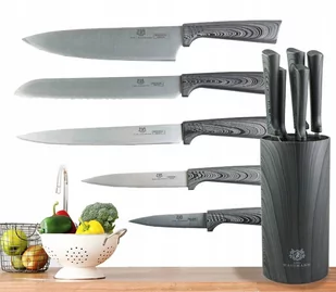 Komplet noży kuchennych zawiera różne rodzaje i wielkości noży, które usprawnią pracę w kuchni i pozwolą na proste i przyjemne przygotowywanie posiłków.