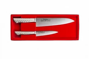 Zestaw Masahiro w opakowaniu ozdobnym składający się z noży z serii MV-S: Chef 210mm oraz Utility 120mm. Nóż szefa kuchni to najbardziej popularne i najczęściej używane ostrze do pracy w kuchni a jego uzupełnieniem są najczęściej noże uniwersalne, będące jego mniejszą wersją. Całość jest zapakowana w piękne pudełko tworząc idealny zestaw na prezent. Charakterystyczny kształt noża szefa, wywodzący się z kuchni francuskiej wykorzystywany jest do wielu zadań kuchennych a nazwa nóż szefa kuchni, podkreśla fakt, że jest to nieodzowne narzędzie każdego kucharza.