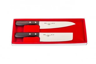 Zestaw Masahiro w opakowaniu ozdobnym składający się z noży MSC Chef 180mm oraz MSC Nakiri 160. Taki skład noży to niezbędne minimum, które powinno znaleźć się w każdej kuchni, dodatkowo zapakowane w piękne pudełko tworzą idealny zestaw na prezent. Nóż szefa kuchni to jeden z najczęściej wybieranych noży do kuchni, zarówno przez profesjonalnych kucharzy jak i amatorów gotowania. Charakterystyczny kształt noża, wywodzący się z kuchni francuskiej wykorzystywany jest do wielu zadań kuchennych a nazwa nóż szefa kuchni, podkreśla fakt, że jest to nieodzowne narzędzie każdego kucharza. Nóż jest bardzo lekki a rękojeść pewnie leży zarówno w małych jak i dużych dłoniach.