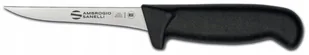 Kod producenta: S307.012Nóż marki Ambrogio Sanelli z linii SUPRA to profesjonalne narzędzie przeznaczone dla szefów kuchni. Sprawdzi się szczególnie do oddzielania mięsa od kości. Posiada ostrze wykonane z wysokiej jakości stali nierdzewnej NITRO-B, w której dodatek cząsteczek azotu znacznie polepsza właściwości antykorozyjne oraz końcową twardość po ulepszaniu cieplnym. Ergonomiczny uchwyt wykonany został z trwałego tworzywa SEBS, które jest elastyczne i odporne na działanie czynników atmosferycznych, ozonu i UV. Nóż nadaje się do sterylizacji, jest wysoce odporny na uderzenia i korozję. Nie nadaje się do mycia w zmywarce.Cechy produktu: