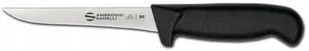 Kod producenta: S307.014Nóż marki Ambrogio Sanelli z linii SUPRA to profesjonalne narzędzie przeznaczone dla szefów kuchni. Sprawdzi się szczególnie do oddzielania mięsa od kości. Posiada ostrze wykonane z wysokiej jakości stali nierdzewnej NITRO-B, w której dodatek cząsteczek azotu znacznie polepsza właściwości antykorozyjne oraz końcową twardość po ulepszaniu cieplnym. Ergonomiczny uchwyt wykonany został z trwałego tworzywa SEBS, które jest elastyczne i odporne na działanie czynników atmosferycznych, ozonu i UV. Nóż nadaje się do sterylizacji, jest wysoce odporny na uderzenia i korozję. Nie nadaje się do mycia w zmywarce.Cechy produktu: