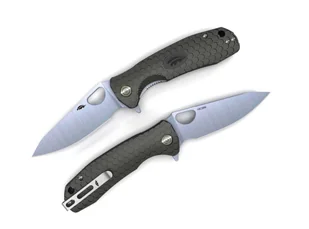 Honey Badger Leaf Small Black nawiązuje do DNA producenta i wyposaża folder w trzymające się krawędzi ostrze 14C28N oraz typowy czarny uchwyt FRN o strukturze plastra miodu. Nóż można otworzyć za pomocą płetwy lub dużego otworu na kciuk. Ostrze zabezpieczone jest solidną blokadą linerlock. Z otworem na smycz i dwustronnym klipsem (wysuwanym do góry).