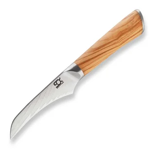 stal nierdzewna, brązowyMateriał ostrza: japońska stal damasceńska VG-10Materiał rękojeści: drewno oliwneWaga: 69 gDługość ostrza: 80 mmDługość rękojeści: