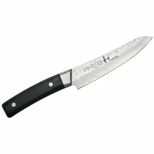 Nóż uniwersalny Kuro marki Nagomi nadaje się do krojenia mięsa czy szatkowania warzyw. Dzięki swojemu kształtowi nóż jest uniwersalny i bez problemu przygotujesz większość posiłków. Ostrze jest wykonane z trzydziestu trzech warstw stali nierdzewnej, co ma wpływ na wolniejsze tępienie się noża. Rękojeść jest wykonana z drewna warstwowego. Produkty nie przywierają do noża dzięki markowanej powierzchni.