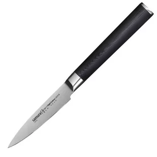 Micarta, G10, drewno stabilizowane, tworzywo sztuczne z delikatną powierzchnią, Kraton i kompozyty. Ten nóż do owoców i warzyw Samura MO-V jest uważany za najmniejszy ze wszystkich noży kuchennych pod względem wielkości, ale w żadnym wypadku nie pod względem znaczenia. Jest to jeden z najbardziej pożądanych noży, który stał się nieodzownym elementem wyposażenia każdej kuchni. Jest przeznaczony do obierania i krojenia małych warzyw i owoców, a jego krótkie, wąskie ostrze doskonale sobie z tym radzi. Dzięki bardzo lekkiej, kompaktowej i ergonomicznej, antypoślizgowej owalnej rękojeści ten nóż do warzyw i owoców idealnie nadaje się do długotrwałej pracy.