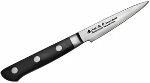Satake Daichi Nóż do obierania 9 cmPoręczny nóż kuchenny, idealny do obróbki małych powierzchni. Krótkie i cienkie ostrze pozwala na łatwe manewrowanie, a zaostrzony czubek pomaga w wykrawaniu niechcianych miejsc w owocach i warzywach. Dane techniczne: Ostrze - stal 69 warstwowa rdzeń MVS10CobTwardość - 60 HRC +/- 1Długość całkowita - 20,5 cmDługość ostrza - 9 cmSzerokość klingi - 2 cmGrubość klingi - ok. 2,1 mmWaga - ok.
