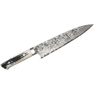 Najbardziej wszechstronny nóż kuchenny, przeznaczony do krojenia, siekania, szatkowania i plastrowania rozmaitych produktów. Nóż szefa kuchni we wprawnych rękach poradzi sobie nawet z porcjowaniem drobiu, usuwaniem kości z mięsa czy filetowaniem ryb. Długość ostrza pozwala kroić większe płaszczyzny i gwarantuje pełną kontrolę nad nożem. Dane techniczne: Ostrze - stal 61 warstwowa rdzeń R2