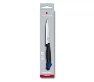 1. Sześć noży do steków z ząbkowaną krawędzią ostrza, 11 cm- ergonomiczna rękojeść z materiału syntetycznego (PP) w kolorze niebieskim- nadaje się do mycia w zmywarceSzwajcarską firmę Victorinox w 1884 roku założył Karl Elsener.