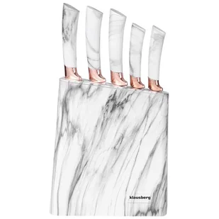 Noże kuchenne w stojaku, kolor biały, z brązowym wzorem, zestaw 6 elementów, Klausberg, KB-7769