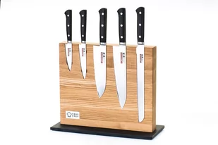 Zestaw noży Masahiro z magnetycznym blokiem ze specjalnie wyselekcjonowanego drewna dębowego. W skład zestawu wchodzi pięć ostrzy z serii MV-H: Chef 210mm, Santoku 175mm, Bread 240mm, Utility 120mm oraz Paring 90mm. Idealnie dobrany skład noży, którymi poradzimy sobie z większością zadań związanych z cięciem, wraz z pięknym blokiem tworzą idealny zestaw na prezent. Chef to jeden z najczęściej wybieranych noży do kuchni, zarówno przez profesjonalnych kucharzy jak i amatorów.