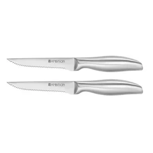 Zestaw 2 noży do steków AMBITION Maestro to lekkie i wygodne w codziennym użytkowaniu narzędzia, które doskonale sprawdzą się podczas serwowania mięs. Wykonane z wysokiej jakości stali nierdzewnej, charakteryzują się trwałością oraz odpornością na uszkodzenia.
