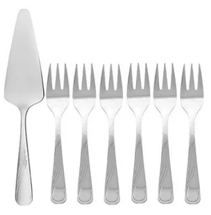 Ambition 89582 sztućce do ciasta 7 elementów Napoli- sztućce w klasycznym kształcie, zdobione subtelnym motywem linii. Widelczyki do ciasta wykonane są ze stali nierdzewnej wysokiej jakości 18/8, ręcznie polerowana. Klasyczny kształt, zdobienie rączki delikatnymi falami.