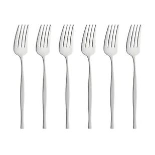 materiał: stal nierdzewna chromoniklowa 18/10 kolor: stalowy wykończenie: błyszczące długość widelczyka: 15 cm 6 sztuk odpowiednie do zmywarki