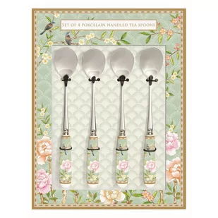 Elegancki zestaw 4 łyżeczek z kolekcji Palace Garden. Kolekcja Palace Garden jest niezwykle elegancka, zdobiona motywami roślinnymi i zwierzęcymi. Łyżeczki o długości 15 cm wykonane są ze stali nierdzewnej. Rękojeść wykonana jest z porcelany w zielonym kolorze z pięknym wzorem charakterystycznym dla tej kolekcji. Znakomite do kawy lub herbaty.