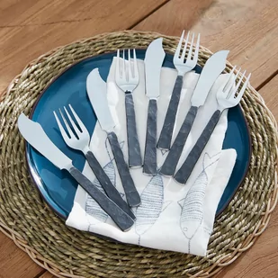 Uświetnią one również letnie przyjęcie w ogrodzie, a także romantyczną kolację przy świecach – to sposób na przyjemne celebrowanie życia. Wykonane ze stali nierdzewnej sztućce są oczywiście wyjątkowo wytrzymałe i można je myć w zmywarce. Ich eleganckim zwieńczeniem są trzonki o wyglądzie kutego żelaza.