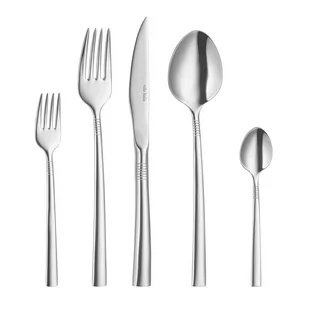 Komplet sztućców dla 12 osób VICTORIA (72 elementy) Duży zestaw sztućców wykonanych z najwyższej jakości stali nierdzewnej chromoniklowej 18/10 - trwałej, o pięknym połysku, odpornej na korozję. Proste, a zarazem eleganckie wzornictwo jest doskonałą propozycją dla osób ceniących minimalizm i nowoczesną stylistykę. Cechą szczególną zestawu sztućców VICTORIA są zdobienia w postaci rowków na każdym elemencie. Noże mają charakterystycznie, delikatnie wygięte trzonki. Sztućce z kolekcji VICTORIA najbardziej pasują do zastawy stołowej o nowoczesnym, prostym wzornictwie.