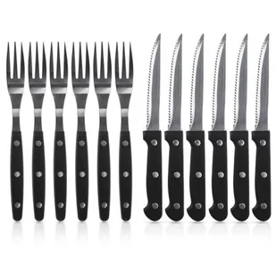 Warto zaopatrzyć się w odpowiednie narzędzia i akcesoria, które okażą się niezbędne w każdej kuchni. Ten zestaw sztućców składa się z 6 noży oraz 6 widelców. Tego rodzaju zestaw świetnie nadaje się do steków, grilla i pizzy. Okaże się bardzo przydatny nie tylko w sezonie letnim, ale także w ciągu całego roku. Sztućce wykonane są ze stali nierdzewnej, dodatkowym atutem jest solidna rączka z 3-punktowym nitowaniem ze stali.
