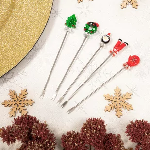 Od góry zwieńczone są dekoracyjnymi miniaturkami w świątecznym klimacie, które równocześnie pełnią funkcję wygodnych rączek. Zestaw zawiera 5 patyczków. Materiał Gadżety zostały wykonane ze stali nierdzewnej, co gwarantuje, że posłużą nam przez wiele sezonów. Elementy ozdobne zrobiono ze szkła. Produkt należy myć ręcznie.