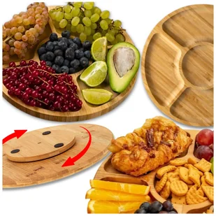 ☘️BAMBUSOWA OBROTOWA DESKA DO SERÓW I WĘDLIN 33 CM☘️ ✨ Twoją pasją jest gotowanie i Szukasz pomysłu na oryginalne podawanie swoich dań? ✨ Sprawia Ci przyjemn...