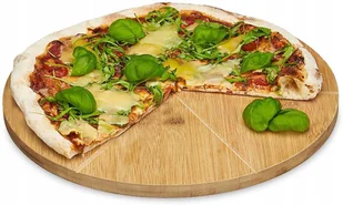 Deska pod pizzę, talerz do pizzy, 33cm, drewniana Łatwe krojenie: Wykonane z twardego bambusa z 6 częściami na plasterki pizzy o jednakowych rozmiarach - Wys...