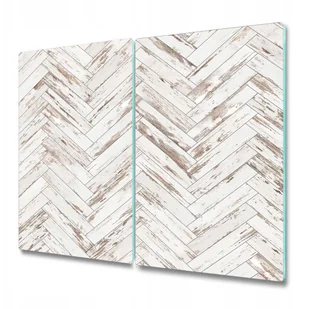 Dwuczęściowa Deska Kuchenna ze Wzorem - Drewniana jodełka - 2 sztuki 30x52 cm Szklane deski z unikalnym i artystycznym wzorem dodadzą wyjątkowego charakteru ...