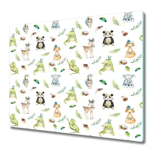 Stylowa Deska Do Krojenia ze Szkła Hartowanego 60x52 cm - Szczęśliwe zwierzaki Szklana deska z unikalnym i artystycznym wzorem doda wyjątkowego charakteru Tw...