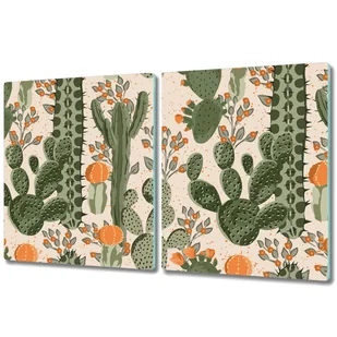 Szklana Osłona na Kuchenkę - Deska Do Krojenia - 2x 40x52 cm - Pomarańczowe kaktusy