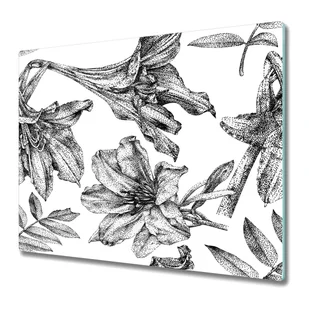 Szklana Osłona na Kuchenkę - Deska Do Krojenia 60x52 cm - Czarno białe lilie Szklana deska z unikalnym i artystycznym wzorem doda wyjątkowego charakteru Twoj...