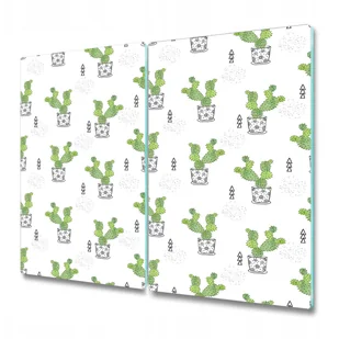 Wytrzymała Deska Kuchenna ze Szkła Hartowanego - Zielone kaktusy w doniczkach - 2 sztuki 30x52 cm Szklane deski z unikalnym i artystycznym wzorem dodadzą wyj...
