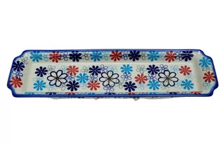 D44 [wys]Wysokość: 3 cm [szer]Szerokość: 12 cm [dlu]Długość: 41 cm [waga]Waga: 1 kg Opis: Oryginalny produkt ceramiki bolesławieckiej - tacka z uszami długa, ręcznie malowana w rodzinnej fabryce, oryginalnej ceramiki bolesławieckiej, ANDY CERAMIKA.