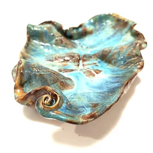 Oferuję wyjątkową paterę ceramiczną, inspirowaną kształtem liścia rabarbaru, która z pewnością doda charakteru Twojemu wnętrzu. Jej wymiary wynoszą 39 cm długości, 29 cm szerokości i 9 cm wysokości, co czyni ją dosk ...