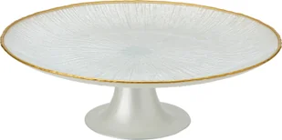Stojak na ciasto na nóżkach wykonany ze szkła to elegancka i funkcjonalna ozdoba stołu, idealna do serwowania wypieków, ciast czy deserów. Wzór w białe paski ze złotą obrączką nadaje mu luksusowy wygląd, który doskonale komponuje się z różnymi stylami dekoracji wnętrz. Dzięki solidnej konstrukcji zapewnia stabilność i wygodę użytkowania.