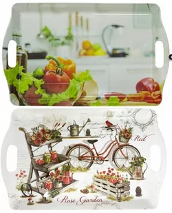 Taca kuchenna tacka kuchenna plastikowa 2 wzory (warzywa, rower) 37x23cm TRAGAR PRODUKT NOWY, ORYGINALNIE ZAPAKOWANY ! TANIEJ NIE ZNAJDZIESZ !!! Taca kuchenna tacka kuchenna plastikowa 37x23cm TRAGAR Praktyczna prostokątna taca kuchenna to produkt przydatny w każdym domu, ale również w pracy. Taca ułatwi nam serwowanie napojów i potraw, a także może stanowić ozdobę w kuchni. Stworzona z melaminy, tworzywa o wyjątkowej sztywności i najwyższej jakości. Daje to gwarancję wytrzymałości przez długie lata. Taca jest bardzo łatwa w utrzymaniu czystości za sprawą jej gładkiej powierzchni, a dzięki jej wyjątkowemu wzornictwu, będzie ozdobą każdego stołu.