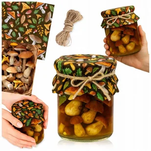 10x KAPTURKI NA SŁOIKI GRZYBY PRZETWORY SERWETKI NAKŁADKI BUTELKI + SZNUREK