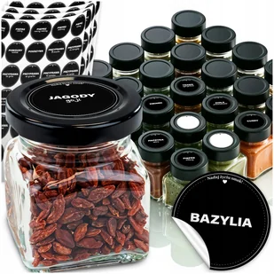 KOMPLET 24 SŁOIKÓW KWADRATOWYCH 120 ML POJEMNIKI SŁOIKI NA PRZYPRAWY + 120 SZTUK ETYKIET SAMOPRZYLEPNYCH ZESTAW DO PRZYPRAW, KTÓRY ODMIENI TWOJĄ KUCHNIĘ ☑️ T...