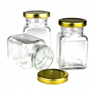 3x pojemniki słoiki słoiczki na przyprawy 150 ml z złotą zakrętką fi 53 Wymiary słoiczka wysokość z zakrętką - 9,8 cm szerokość podstawy - 5,6 x 5,6cm podsta...