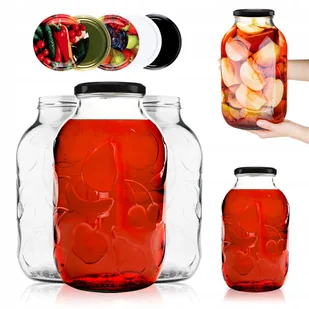 6x Słój szklany 5 L z wzorami OWOCÓW na przetwory, kiszonki, owoce, ogórki + zakrętka Zestaw 6 sztuk: 🍎🍊 SŁÓJ SZKLANY 5 L + zakrętka 🍒🍇 Ten solidny słoik...
