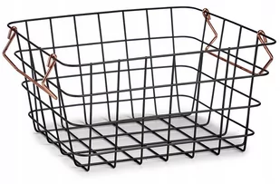 22,8cm ; szer. 31cm Solidna konstrukcja Kolor: czarny, miedziany Materiał: stal Wykończenie: matowe Łatwy do czyszczenia Kompaktowy rozmiar Przystosowany do kontaktu z żywnością Dodatkowe miejsce do przechowywania Kosz sprawdzi się do przechowywania przypraw, butelek z oliwą, słoików, warzyw i owoców, cebuli, czosnku czy jakichkolwiek produktów spożywczych i nie tylko.