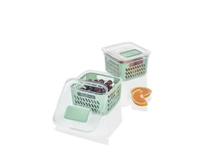 LIVARNO home Pojemnik lub zestaw pojemników do przechowywania żywności z wyjmowanym wkładem ociekowym (małe 2 sztuki, zielone)