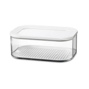 8,6 x 16 x 22,4 cmMożliwość sztaplowania z innymi puszkami z serii ModulaDostosowana do seraPrzezroczysta (widok zawartości i ilości) | Można myć w zmywarceSłoik do przechowywania Modula z przezroczystą pokrywką z białym brzegiem. Kwadratowa puszka z zaokrąglonymi rogami umożliwia bezpośredni wgląd w zawartość, nawet w szufladzie kuchennej! Przezroczysta pokrywka z białą obwódką i pierścieniem uszczelniającym zapewnia doskonałe uszczelnienie, dzięki czemu ten słoik do przechowywania jest idealny do przechowywania suchej żywności, takiej jak ryż, makaron, kostki cukru lub mąka. Słoiki do przechowywania Modula są dostępne w różnych rozmiarach i wzorach, wygodnie leżą w dłoni i łatwo się je otwiera. Pojemniki można układać jeden na drugim i myć w zmywarce. Szukasz pojemnika do przechowywania, który przechowa Twój ser przez długi czas? W takim razie trafiłeś we właściwe miejsce z tym pojemnikiem do przechowywania od Mepal.