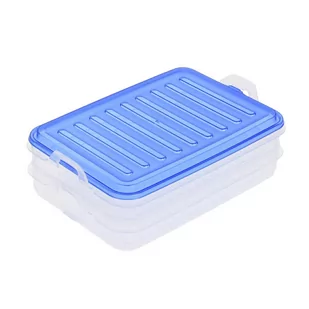 Praktyczny organizer, zestaw pojemników 2-poziomowych do przechowywania wędlin, serów, owoców. Pojemniki wykonane z tworzywa sztucznego wolnego od BPA. Idealnie nadają się do przechowywania żywności w lodówce. Pojemniki wchodzą jeden na drugi tworząc jedną całość co pozwala zaoszczędzić miejsce w lodówce. Dzięki zamykaniu na zatrzaski są szczelne co powoduje, że przechowywane produkty dłużej zachowają swoją świeżość.