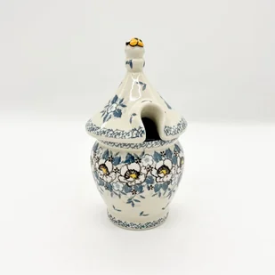 Pojemnik na miód z ceramiki bolesławieckiej, ręcznie malowany, 1 motywem pszczoły ✅ Ręczna robota – oryginalna ceramika z Bolesławca ✅ Tradycyjny wzór z ręcz...