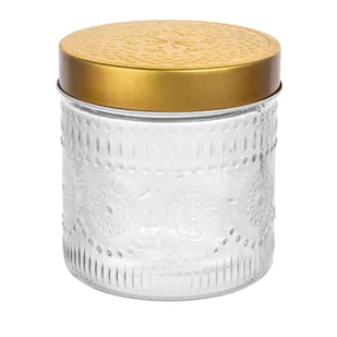 Styl i funkcjonalność w idealnej harmonii! Ten elegancki szklany pojemnik z kolekcji Daisy stanie się nie tylko praktycznym rozwiązaniem do przechowywania, ale także stylowym elementem dekoracyjnym w Twoim domu. Jego smukły, okrągły kształt i subtelne tłoczenia inspirowane kwiatowymi motywami sprawiają, że doskonale wpisuje się w klasyczne i nowoczesne wnętrza. Najważniejsze cechy produktu: Elegancki design: Złota pokrywka w połączeniu z dekoracyjnym szkłem nadaje produktowi luksusowy charakter.