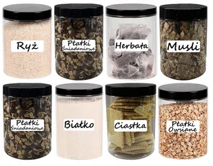 POJEMNIK PLASTIKOWY SŁOIK 1L 8 SZT + ETYKIETY
